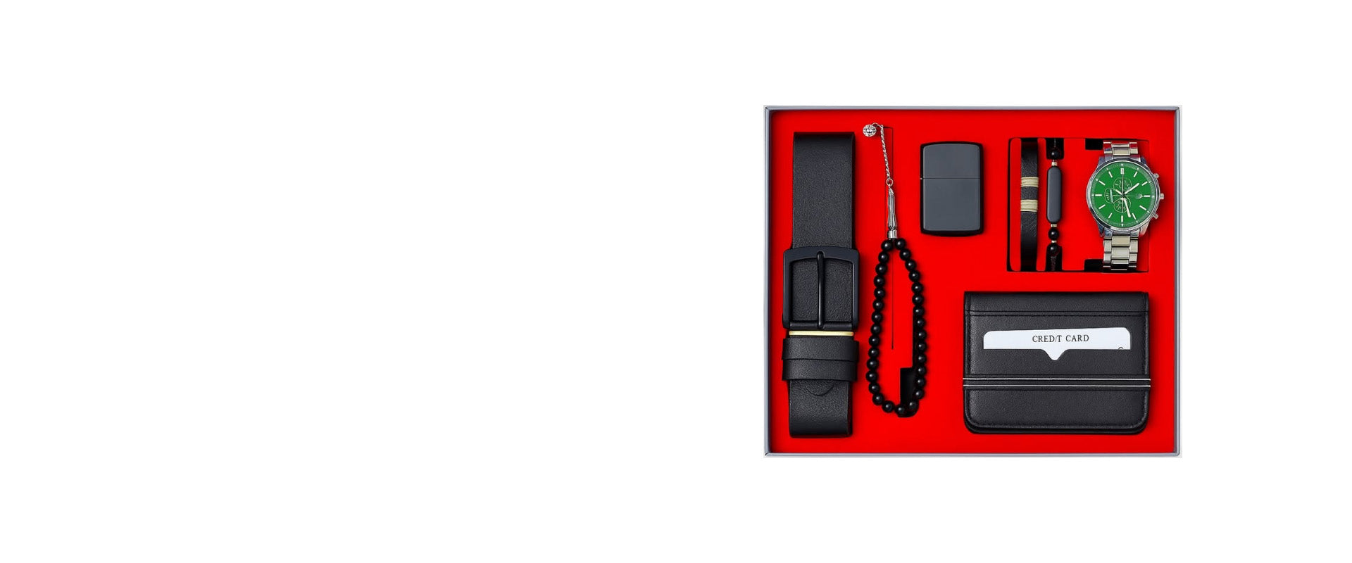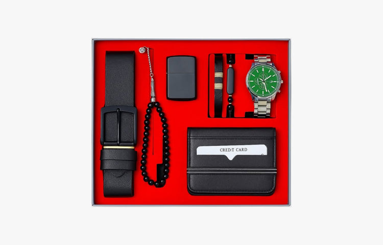 Deri Cüzdan - Tespih - Deri Kemer - Çakmak - Deri Bileklik - Kol Saati Hediye Seti